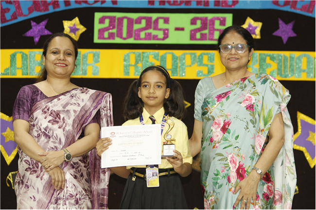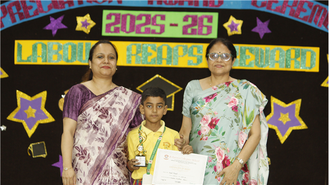 The ceremony began with the lighting of the lamp and a serene prayer song, “I’ve Got Peace Like a River.” Students were felicitated as Class and Subject Toppers, while those with perfect attendance were also honoured.