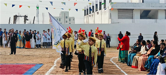 The 77th Republic Day was celebrated with great pride and patriotic fervour at our school, reflecting the spirit of unity, responsibility, and national pride. The programme began with the unfurling of the National Flag by the Principal and the Coordinator, followed by the soulful rendition of the National Anthem.